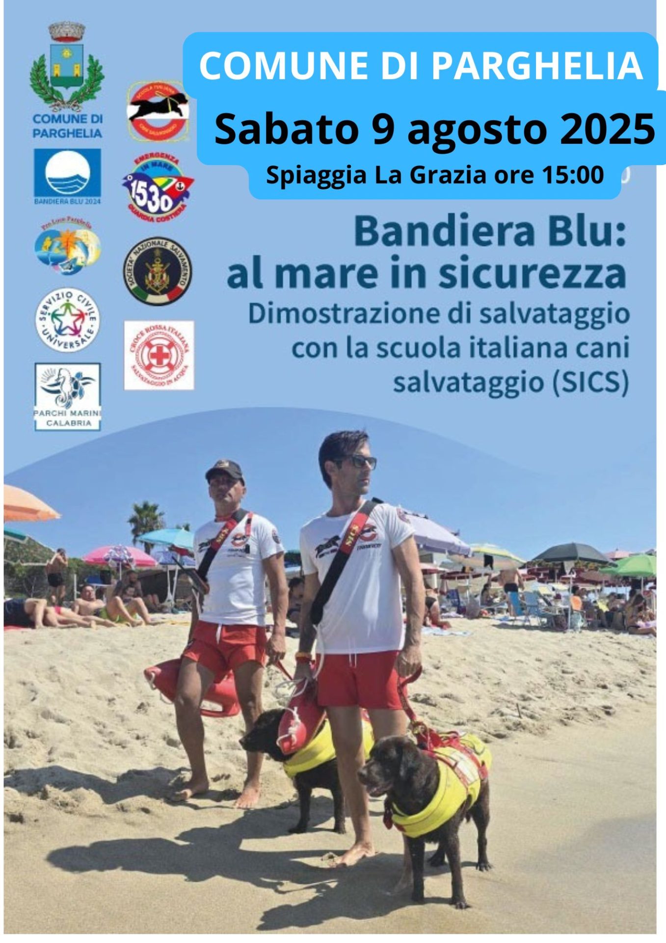 Cos'è Dimostrazione di salvataggio con la scuola italiana cani salvataggio (SICS) presso spiaggia la Grazia ore 15:00.